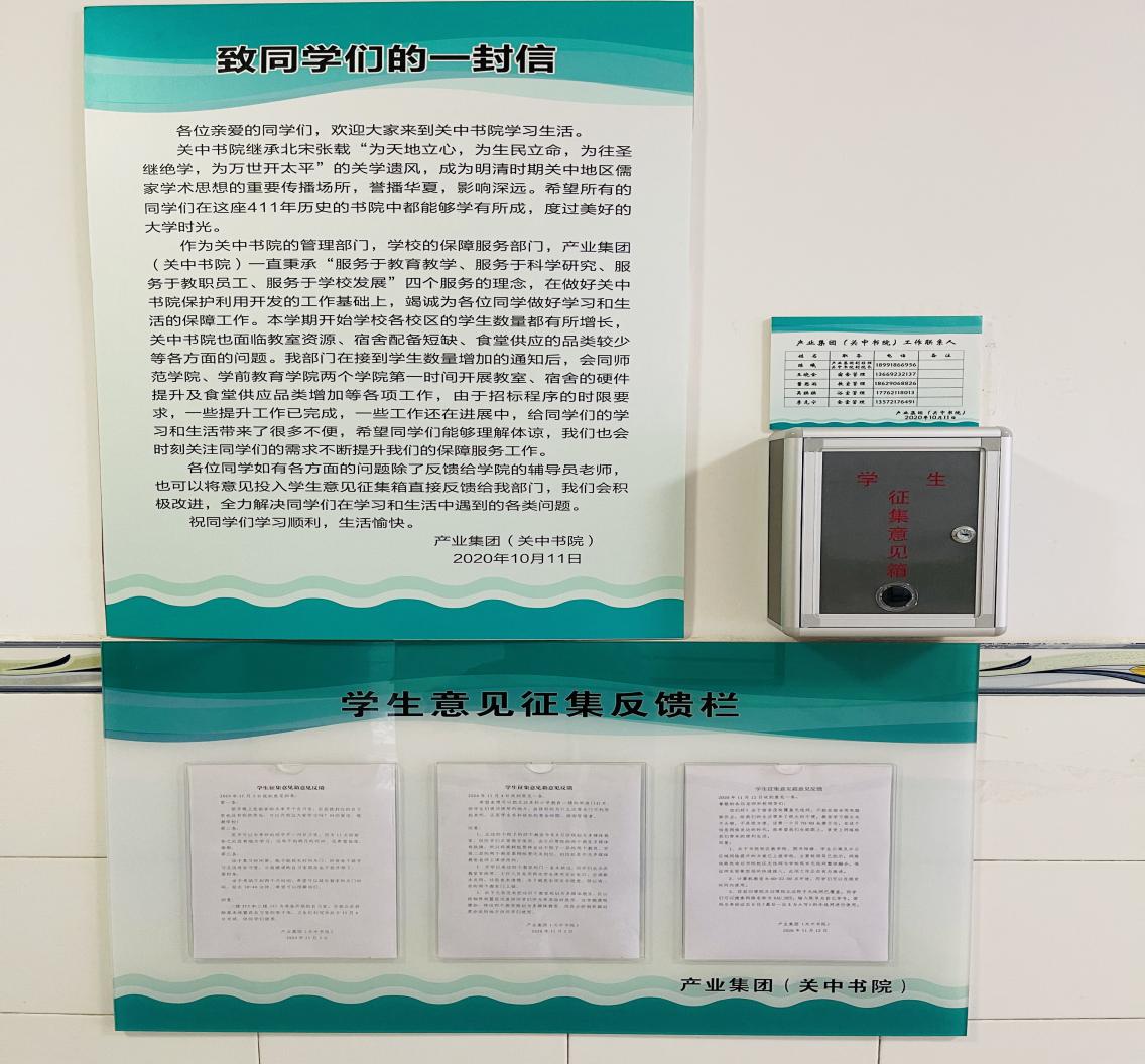 党史学习教育启动以来,产业集团将党史学习教育和中心工作相结合,以“我为群众办实事”为目标,不断提升为师生服务、为师生办事的实效,各项工作扎实开展。一是挖掘梳理学生急难愁盼问题。建立书院校区学生沟通群,学生公寓设意见箱,成立监督岗,畅通沟通渠道,对学生反映的各类事项第一时间解决。在酷暑到来前,对学生宿舍空调、风扇逐一排查维修更换,调整学生洗浴时间,延长用餐时间。二是提高书院校区教学保障能力。和学院沟通制定书院校区教室、实训室、餐厅、公寓、图书馆、校园网络等基础设施改造提升方案,各改造项目有序推进,确保下学期开学投入使用。三是发挥关中书院社会服务职能。承办陕西省社科院、西安市科技局、南院门街道办等多家单位传统文化体验活动,让书院文化、关学精神发扬光大。四是提高产业集团服务师生水平。定制韦德·官方版入口-韦德online(中国)、关中书院品牌苏打水在本学期毕业典礼时免费向毕业生及家长提供,增加毕业生幸福感。集团所属重德物业承接太白校区物业服务外包项目,下大力气整治家属区环境卫生、停车秩序,为教职工营造了安全和谐的生活环境。